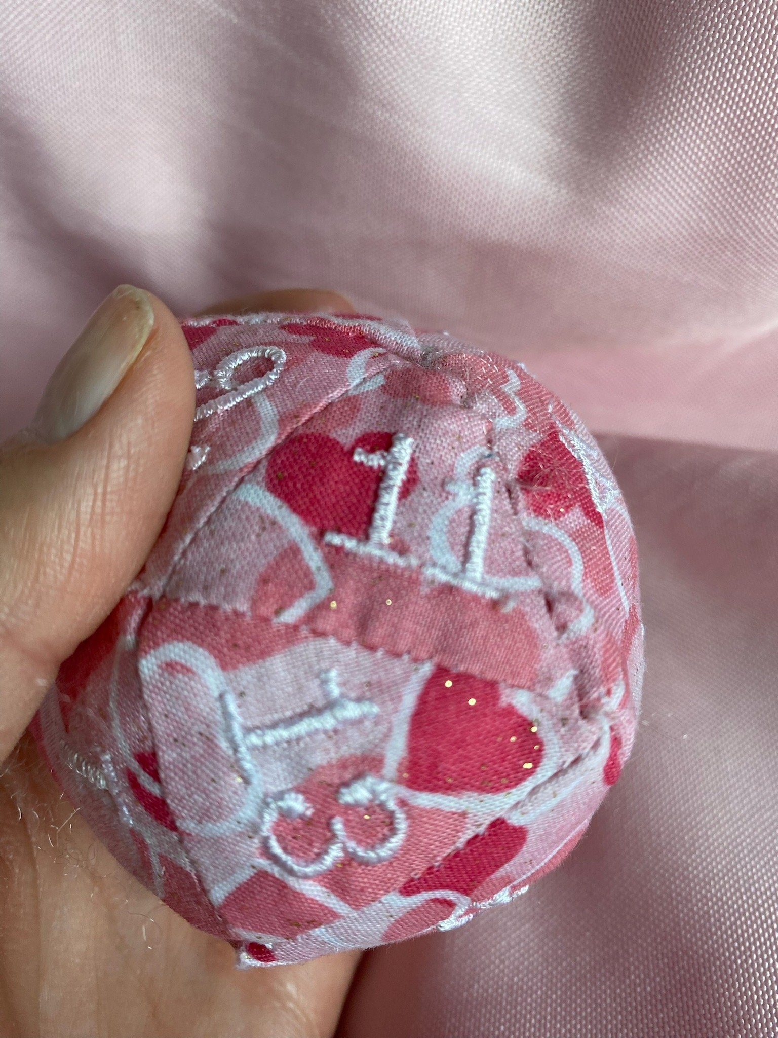 Materials: 100% cotton, polyfil filling, rayon embroidery thread, metal bell, 3 pinches of SmartyKat catnip with silver vine