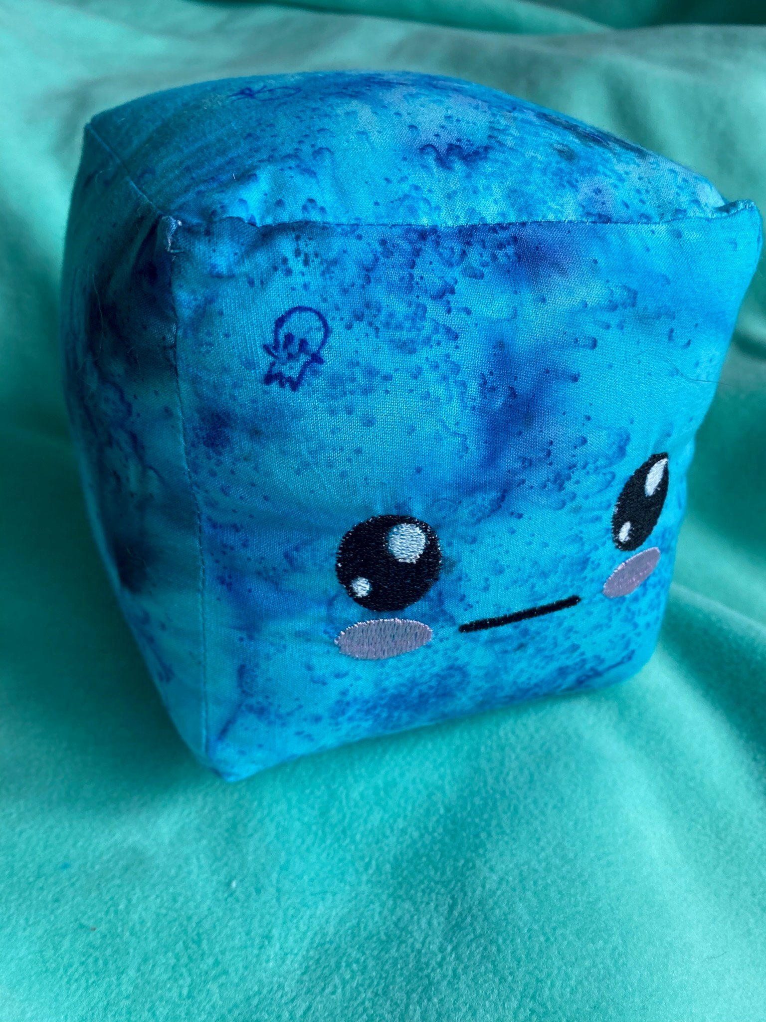 The infamous gelatinous cube, one of the classic DnD creatures and now you too can have the adorable version of said monster. Monsters can be cute too! This little guy is always happy to see you and has little treasures along the surface to find out what its been eating. These little cubes are made of soft cotton on the outside and plush polyfil stuffing. Don’t worry about choking hazards or loose threads because the faces are machine embroidered and the whole cube is machine stitched together. These are great for children, teens, adults, whatever age because who doesn’t love a squishy fluffy cube with an adorable face?! Great for birthdays, baby showers, anniversaries, Christmas, or just because!