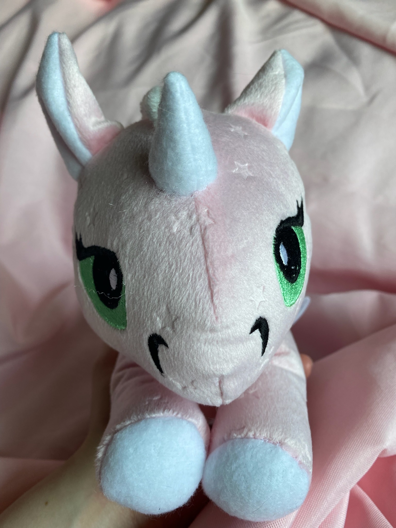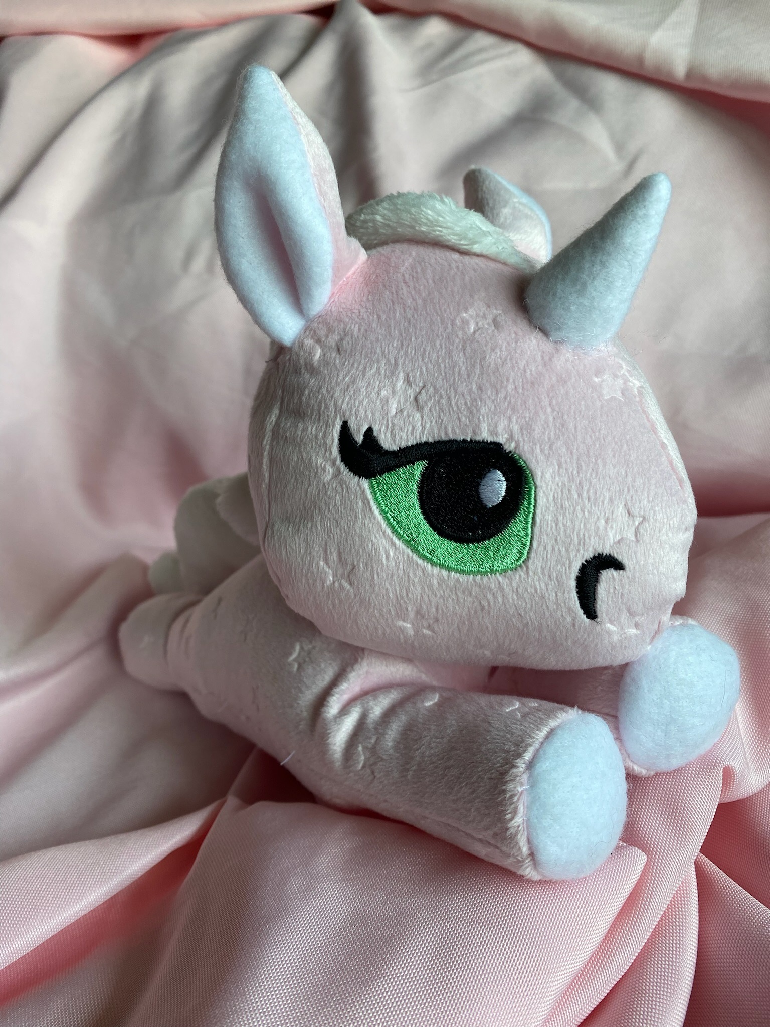 Each unicorn’s face is machine embroidered and each body and head is machine sewn and hand stitched together. Made with super soft cuddle minky you will be petting them for hours. Also filled with fluffy polyfil and beans they are extra snuggly and cuddly.