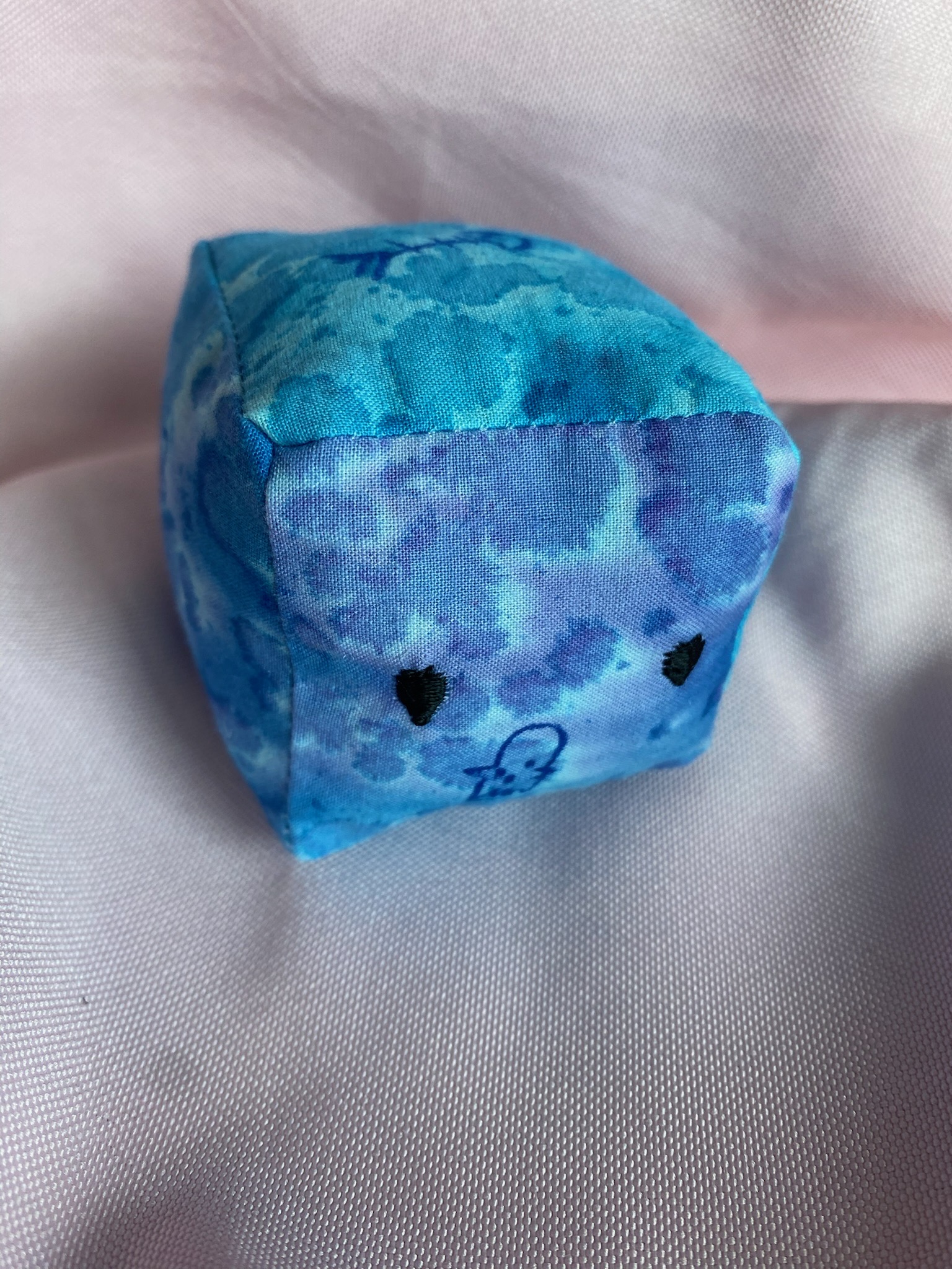 Does your familiar need a monster to play with? Look no further! Here at Critical Cuteness we make sure both you and your familiar are taken care of. This tiny jellycube is perfect for any feline familiar looking for fun playtime. Filled with polyfil, a dingle bell, and a good amount of catnip with silver vine your cat is sure to have a good high and great time attacking this cute little monster. If you look closely you can spot some of the tiny items the cube has absorbed in its adventure. This is the perfect gift for your friendly feline familiar. It’s been tested with multiple familiars and the results are the same, endless fun and adventure!